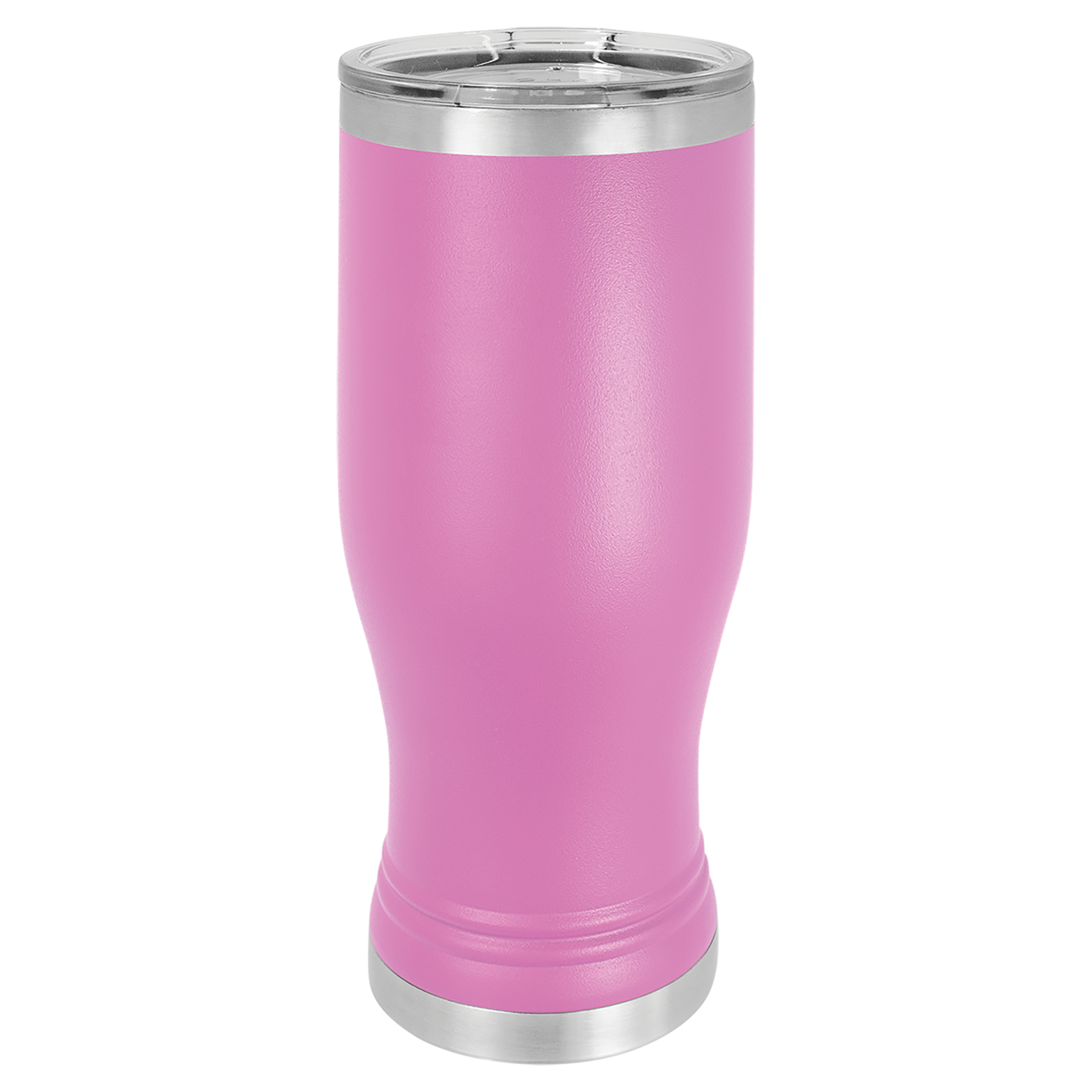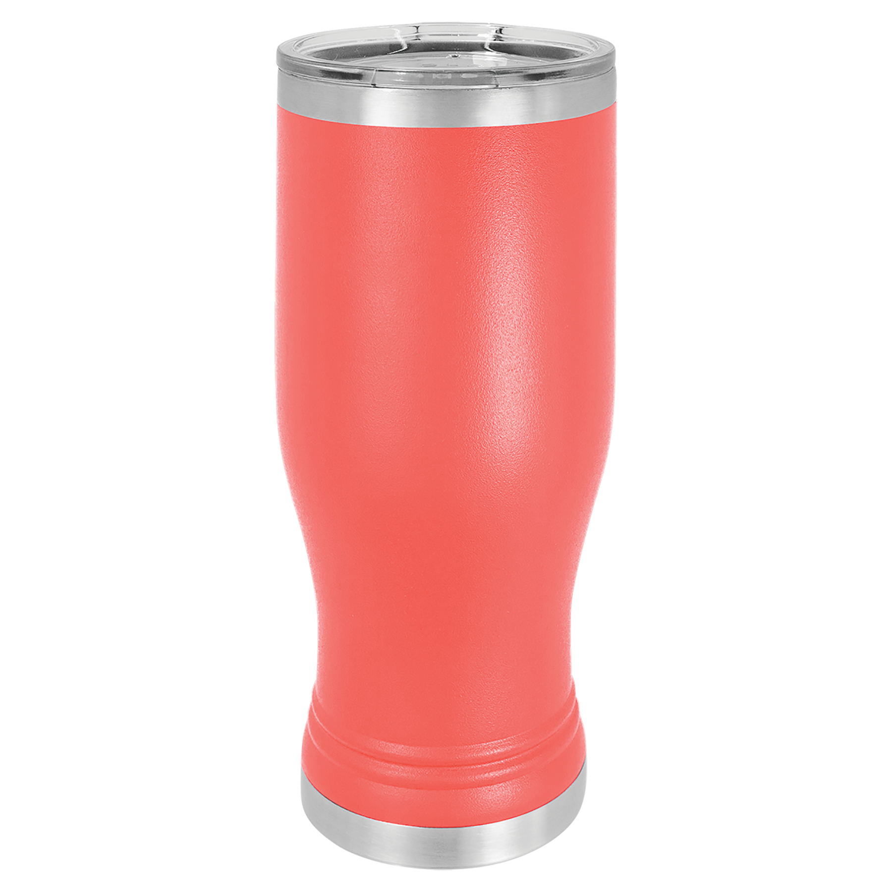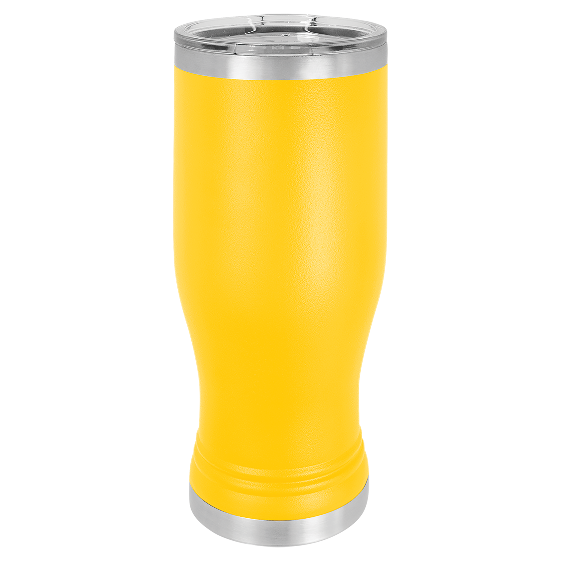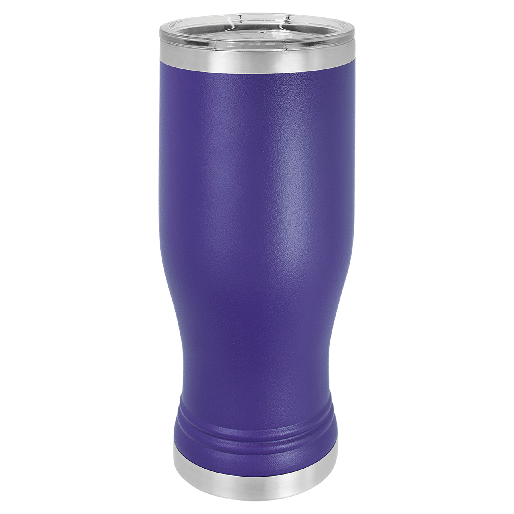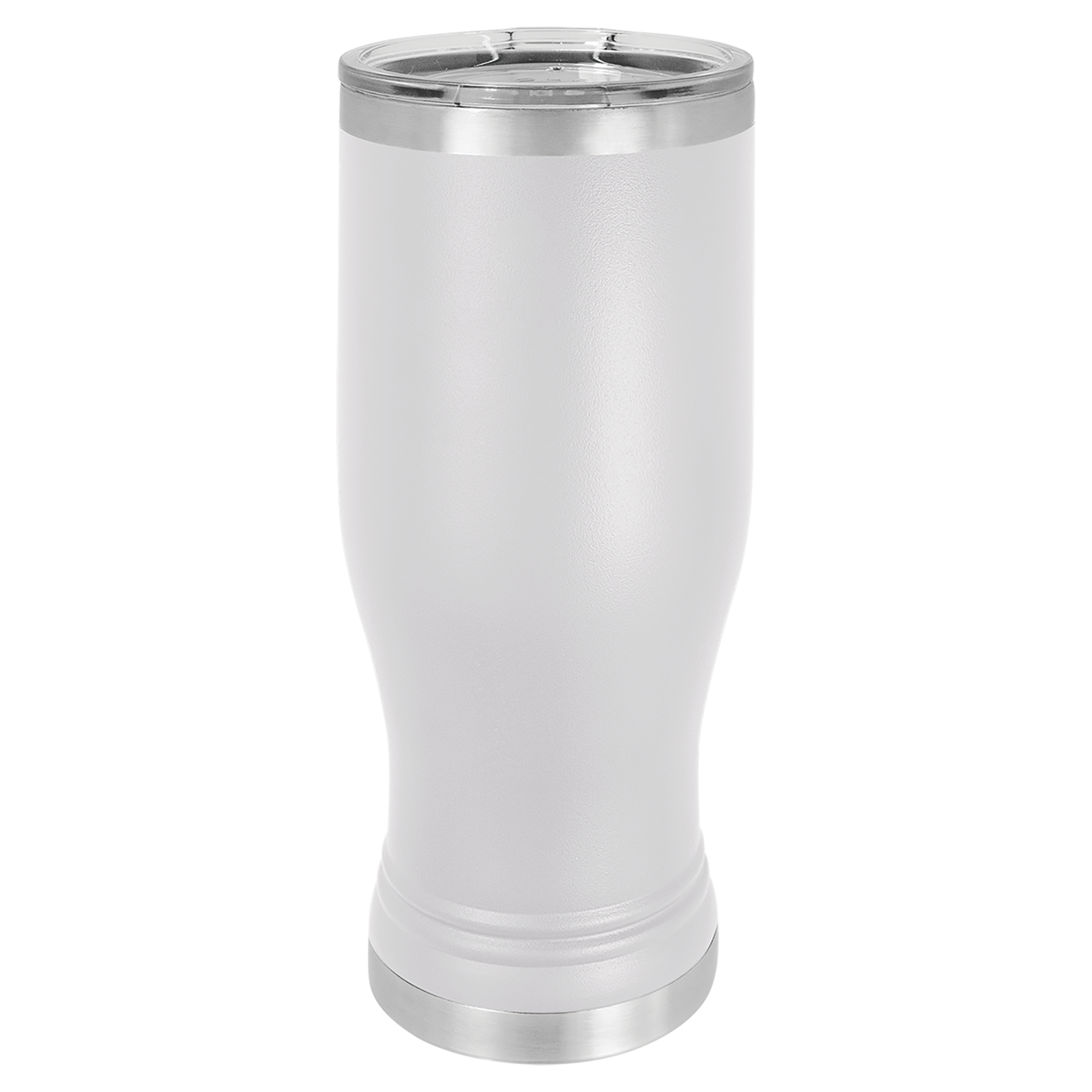 14 oz. Stainless Steel Pilsner features double-wall vacuum insulation with a clear lid. The pilsner has a narrower bottom to fit most standard cup holders. It is 2X heat & cold-resistant compared to other tumblers.