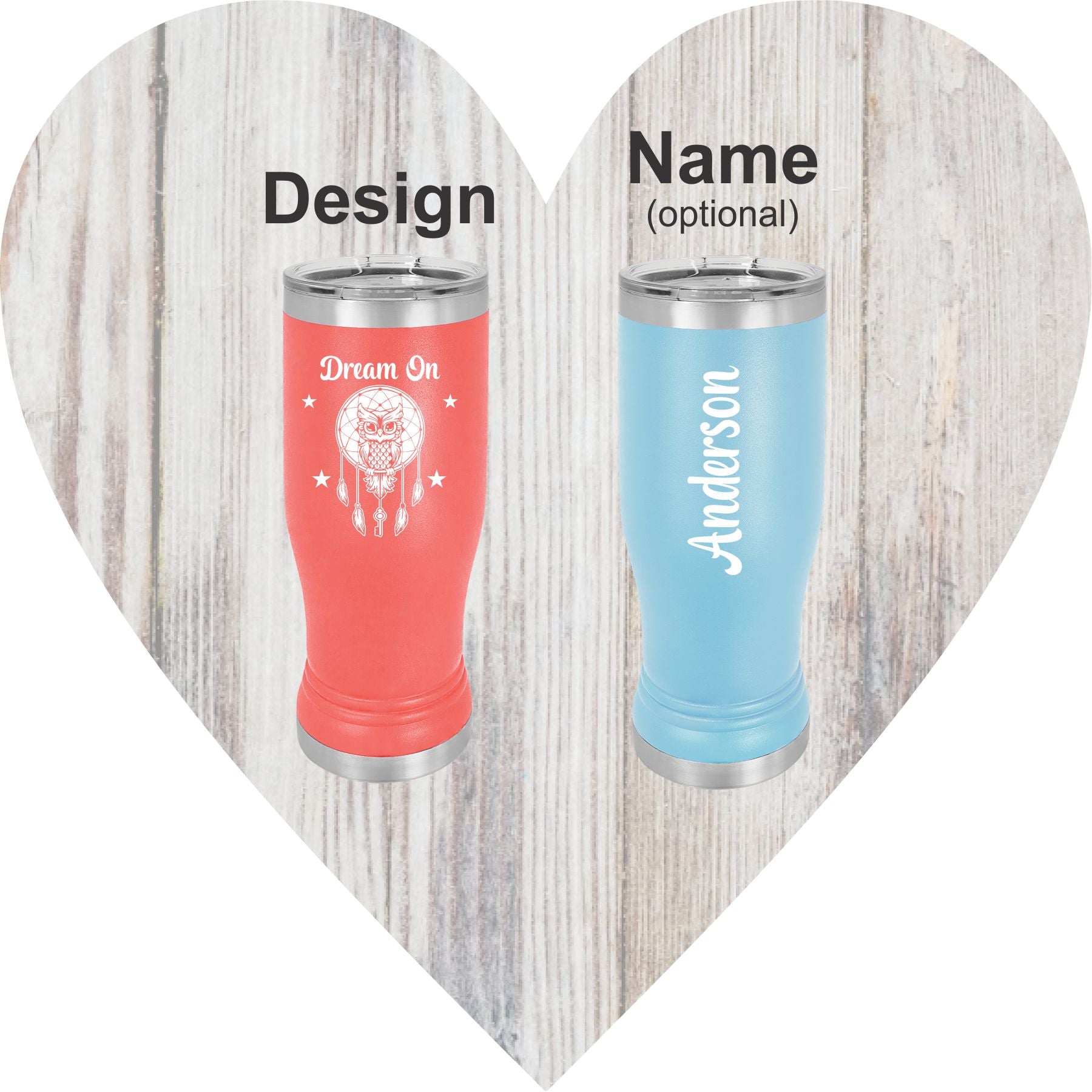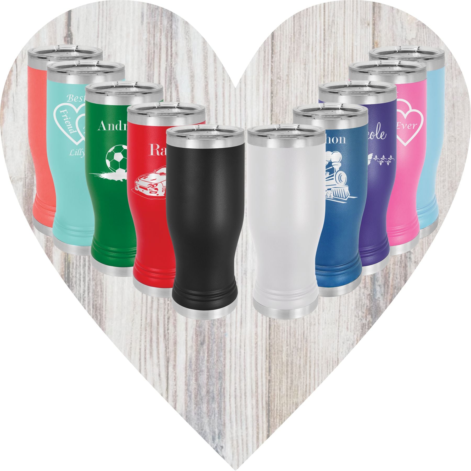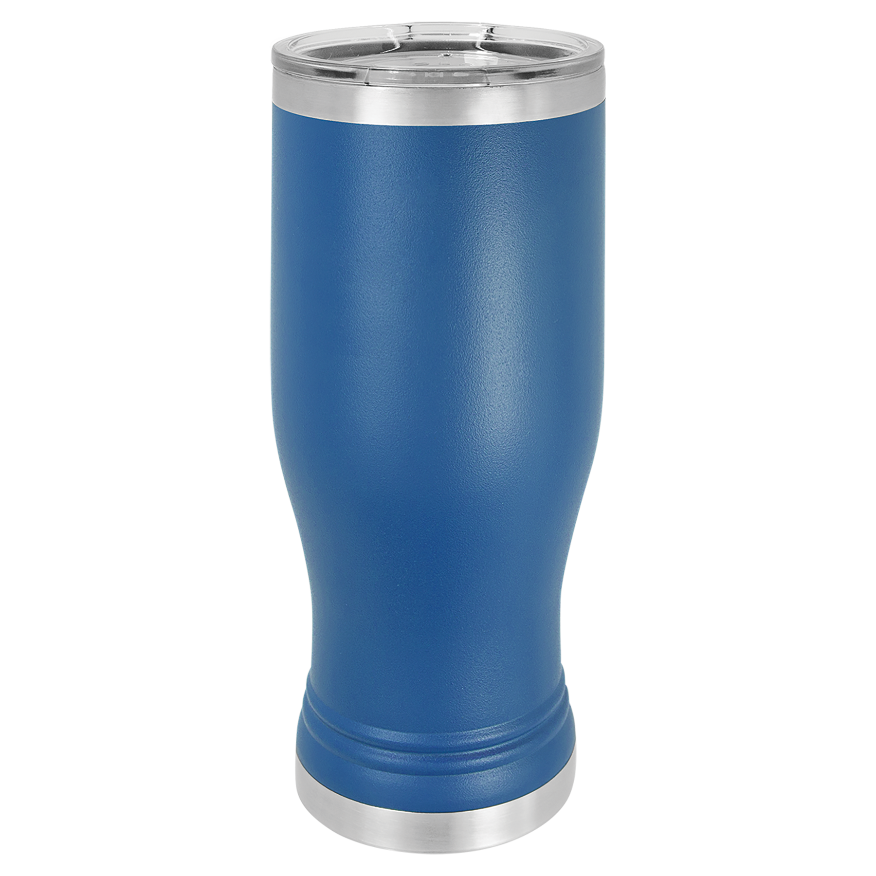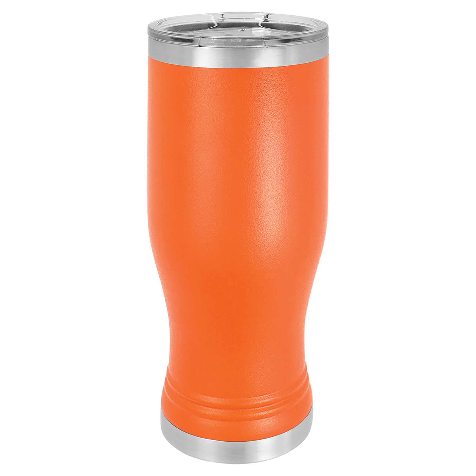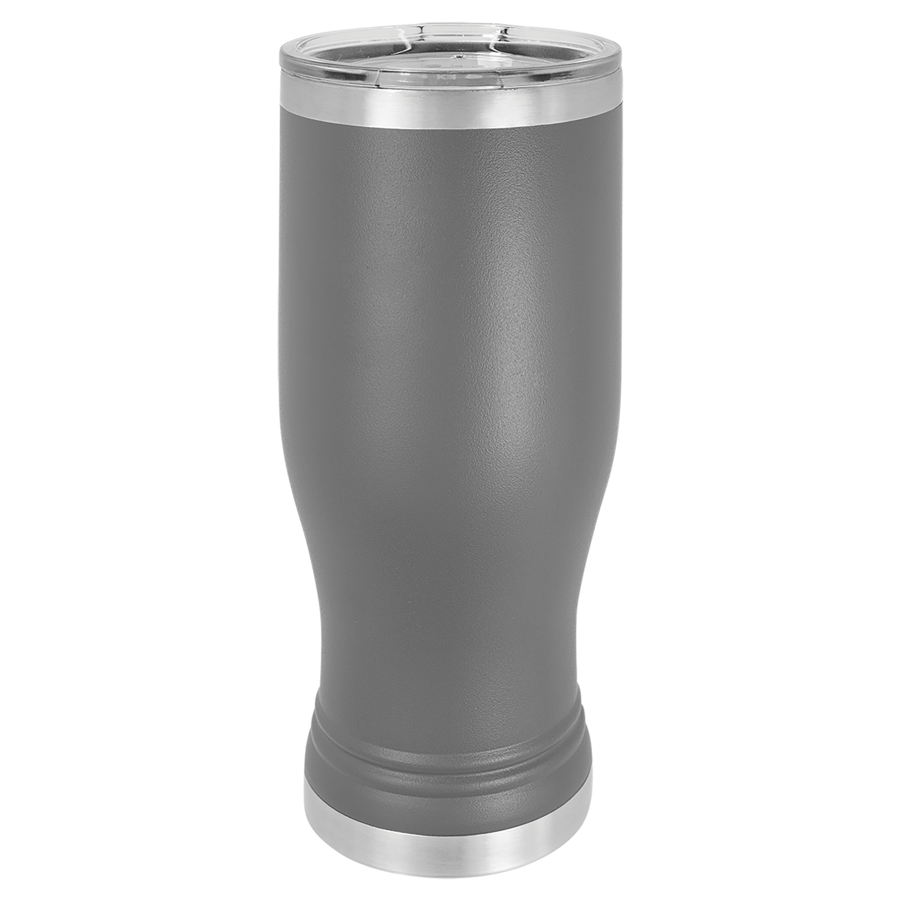 14 oz. Stainless Steel Pilsner features double-wall vacuum insulation with a clear lid. The pilsner has a narrower bottom to fit most standard cup holders. It is 2X heat & cold-resistant compared to other tumblers.