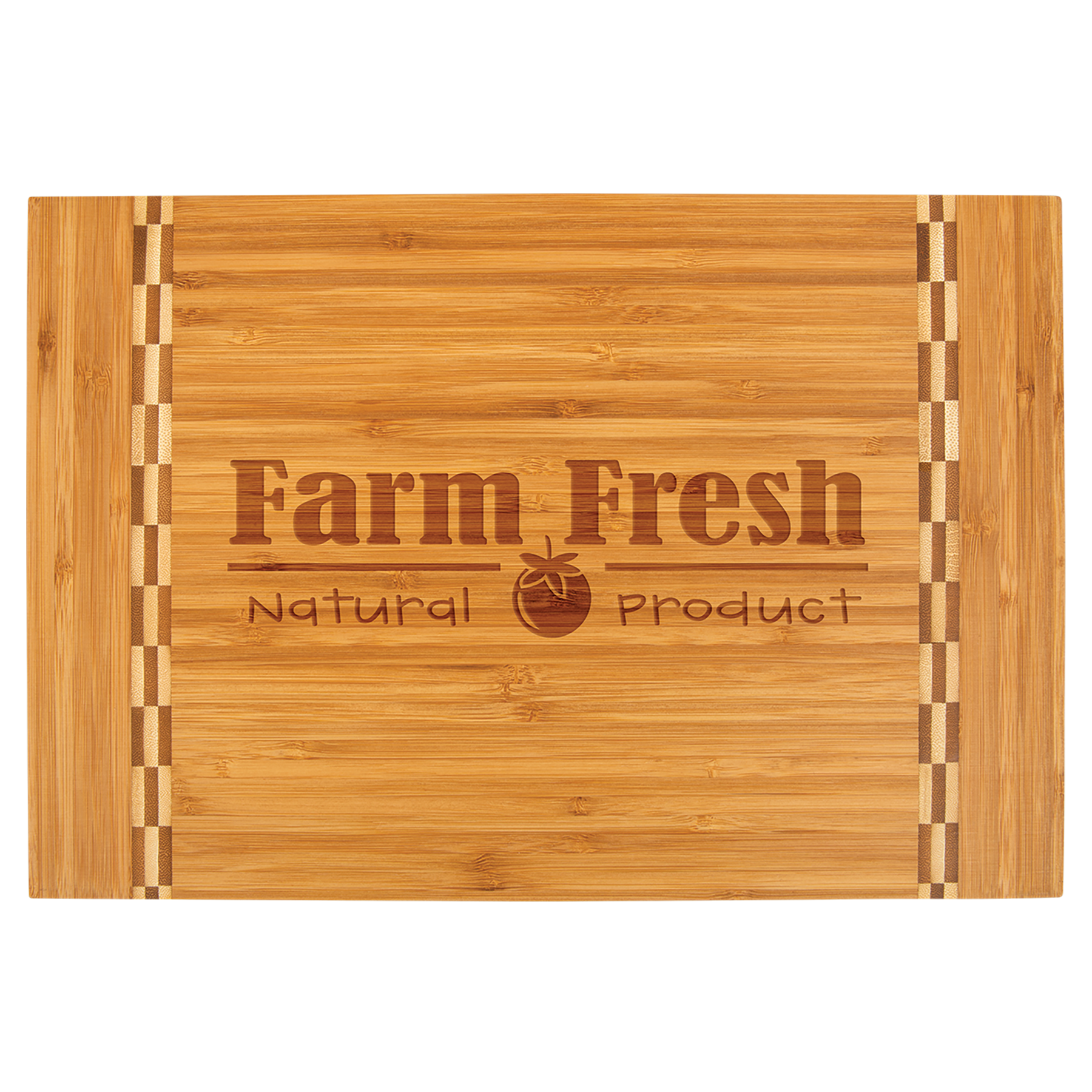 15 x 10 1/4 " Rectangle Bamboo Cutting Board with Butcher Block Ends. Bamboo includes natural variations in color in wood grain and engraving, adding to the uniqueness of each piece. Your custom design will have a richly toned, deeper hue than the cutting board itself when engraved.