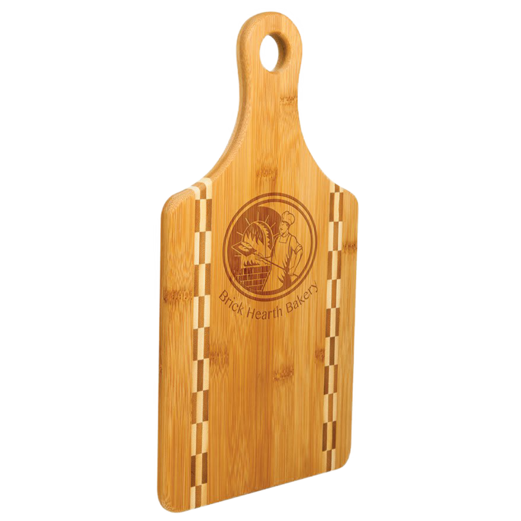 Paddle Shaped Bamboo Cutting Board with Butcher Block Inlay