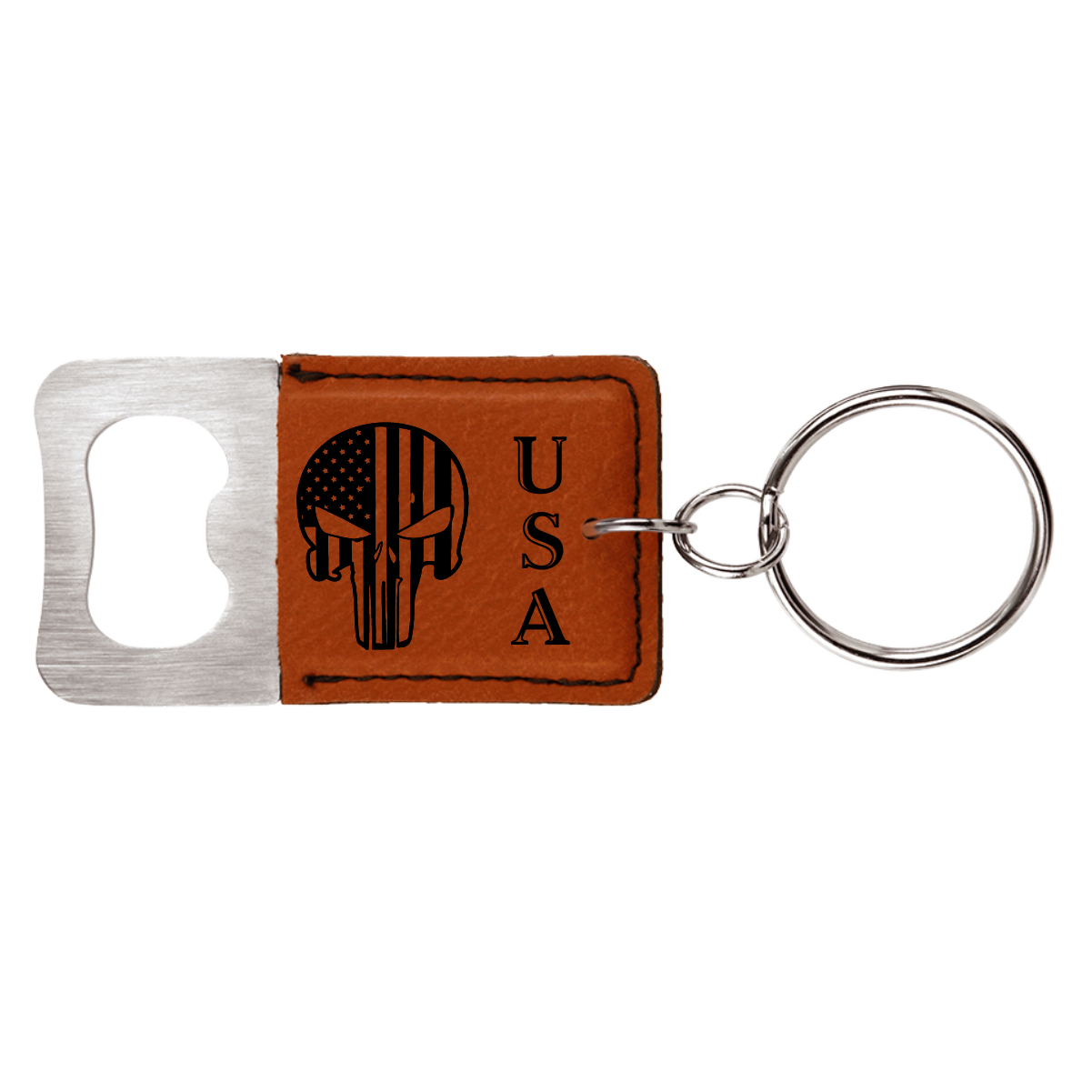 This high quality, leatherette wrapped, stainless steel bottle openers have a velvety smooth feel and are a durable tool. We will personalize your bottle opener with the information you provide in the design style of your choice.