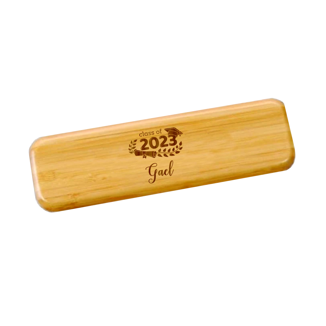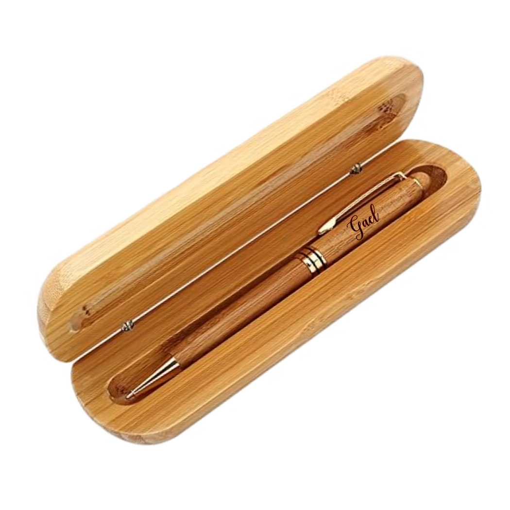 Wooden Pen/Pencil Cases are solid wood and designed to hold either wide or narrow pens. Pen Included. They are both, case & pen customized by laser engraving.