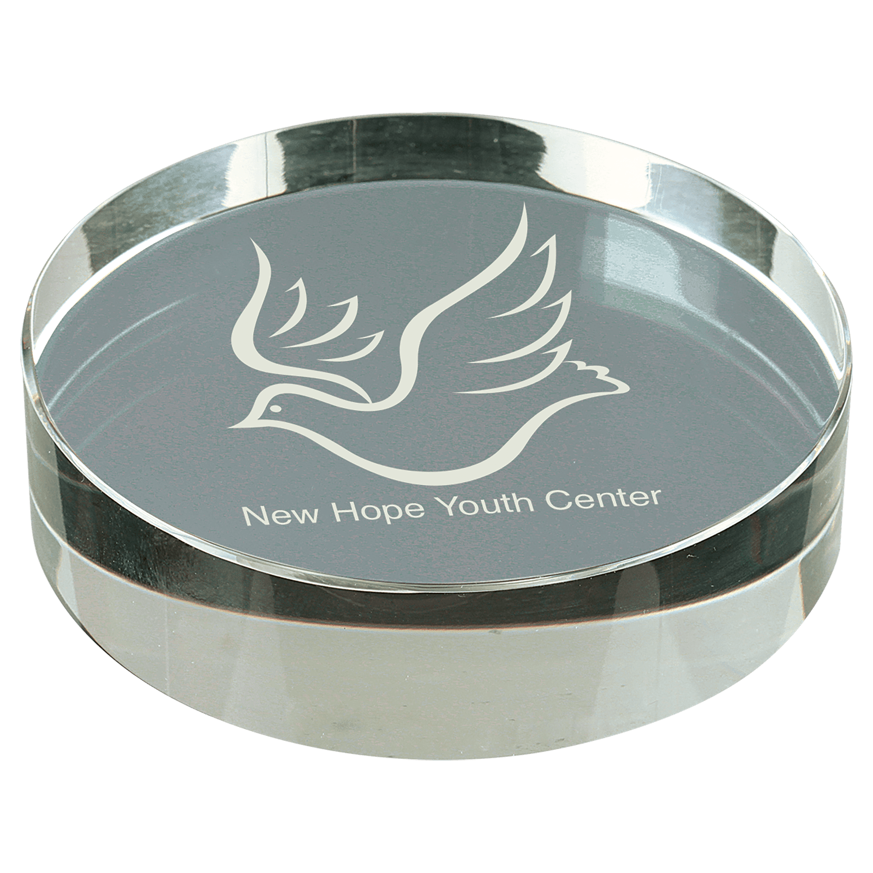 Our Premier Crystal Paperweights is handmade and may vary slightly in size. Optic crystal round paperweight with slight bevel edge. Packaged individually in a lined gift box. Premier Crystal is the ultimate way to recognize and honor!.